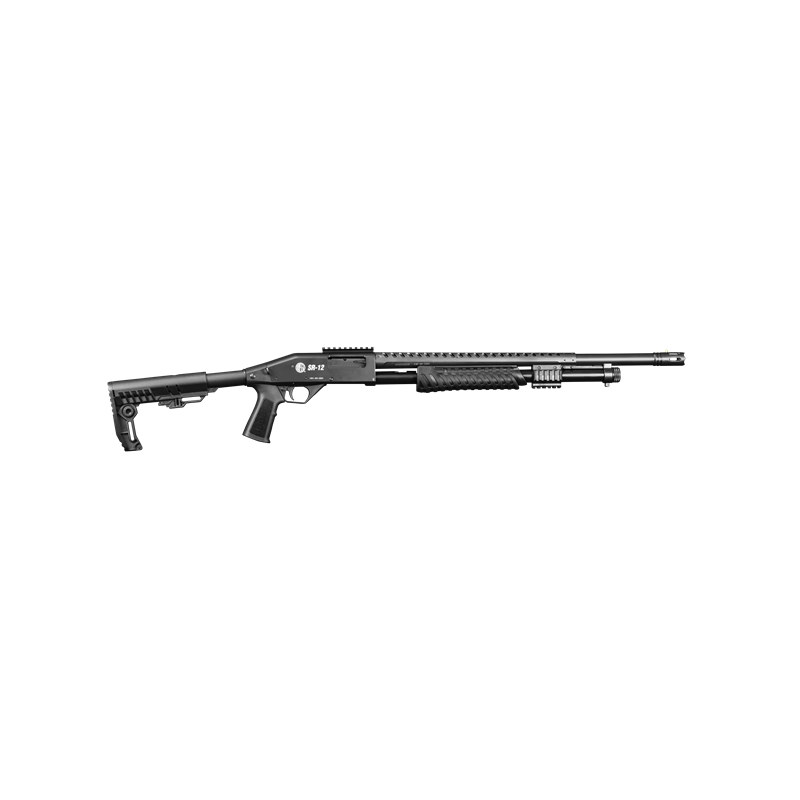 Le SR12 est un fusil à réarmement manuel avec une version TACTICAL. Il est équipé d'une crosse tactique, d'un canon rayé de 61 cm avec son déflecteur de chaleur utile lors de tir soutenu, d'une embase sur le boitier pour la fixation d'une lunette ou d'un point rouge et d'un triple rails de 22 mm à l'avant pour l'adaptation d'accessoires (lampes, lasers, etc...)