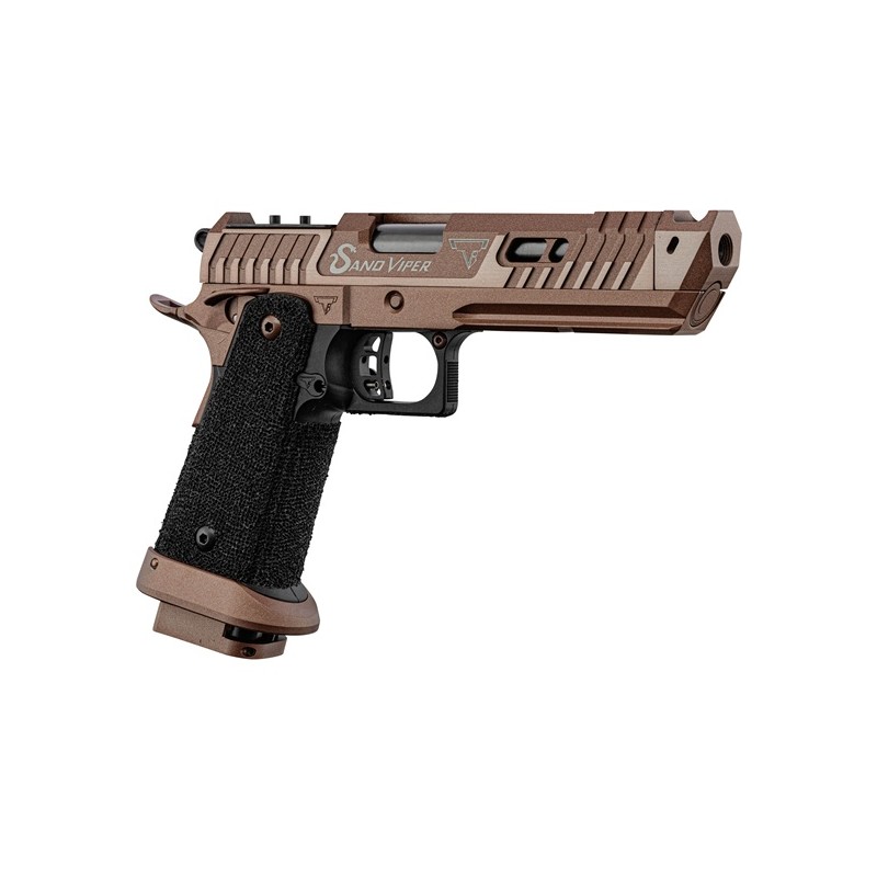 Fabriqué par Army Armament, sous licence officielle Taran Tactical Innovations, le GBB Sand Viper est une réplique airsoft du pistolet de combat 9 mm utilisé par John Wick dans le chapitre 4 de la saga cinématographique.