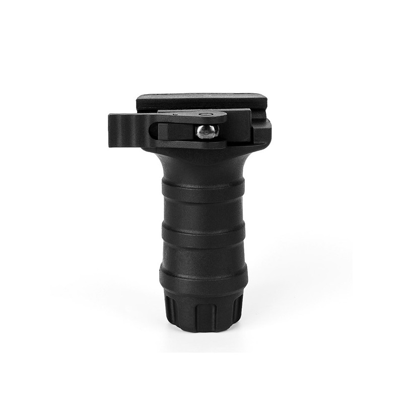 Son système QD (Quick Detach, pour attache rapide) en métal permet de fixer la poignée sur n'importe quel rail Picatinny / RIS / RAS / 21mm.